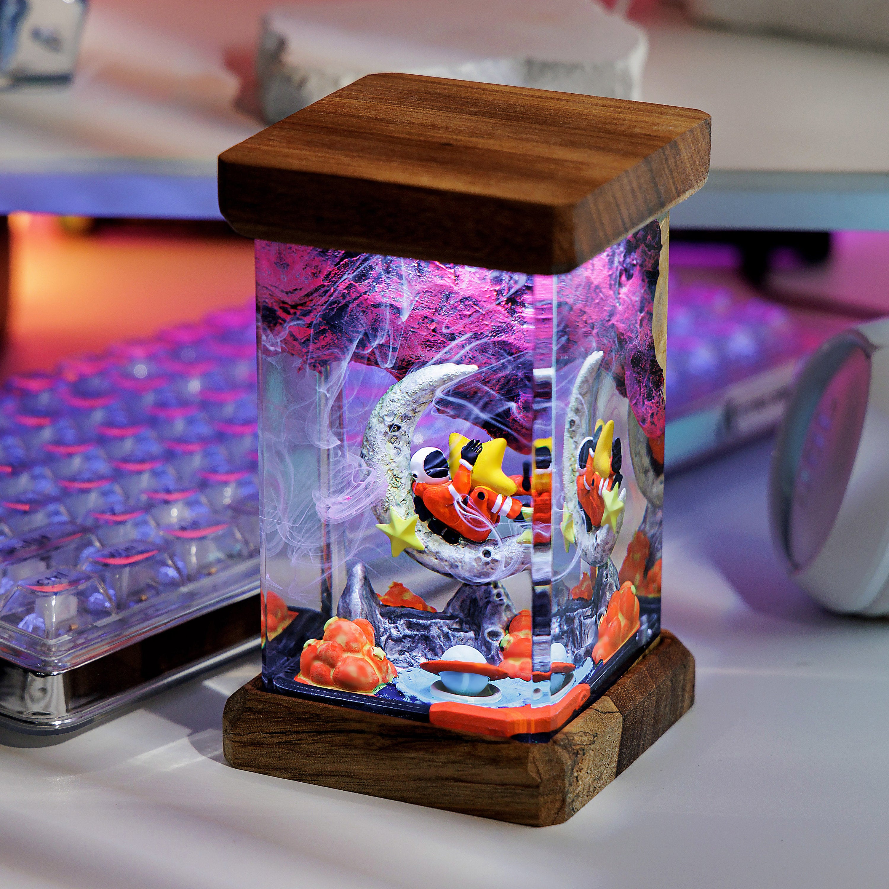 A custom RGB LED system is fitted into the handcrafted base, ready to light up your space.